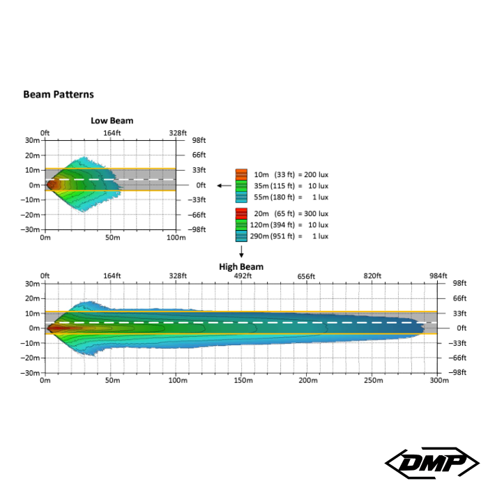 • Low beam: 3600 raw / 2651 effective lumens from three projection-style LEDs