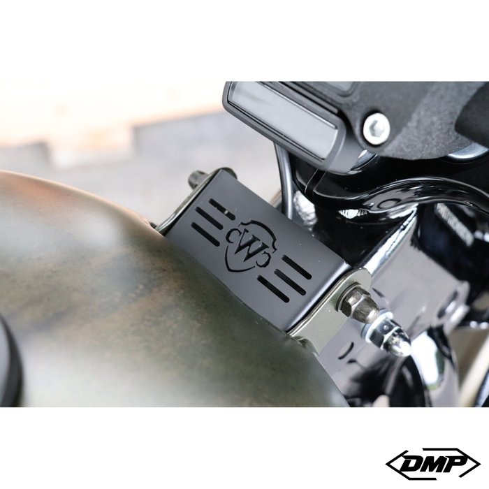 The kit raises the fuel tank 40–50 mm with adjustable height and mounts directly to the front tank mount. In addition to improving aesthetics, it allows the main wiring harness to be routed cleanly between the tank and frame—no wiring modifications required—for a super clean and professional finish.
