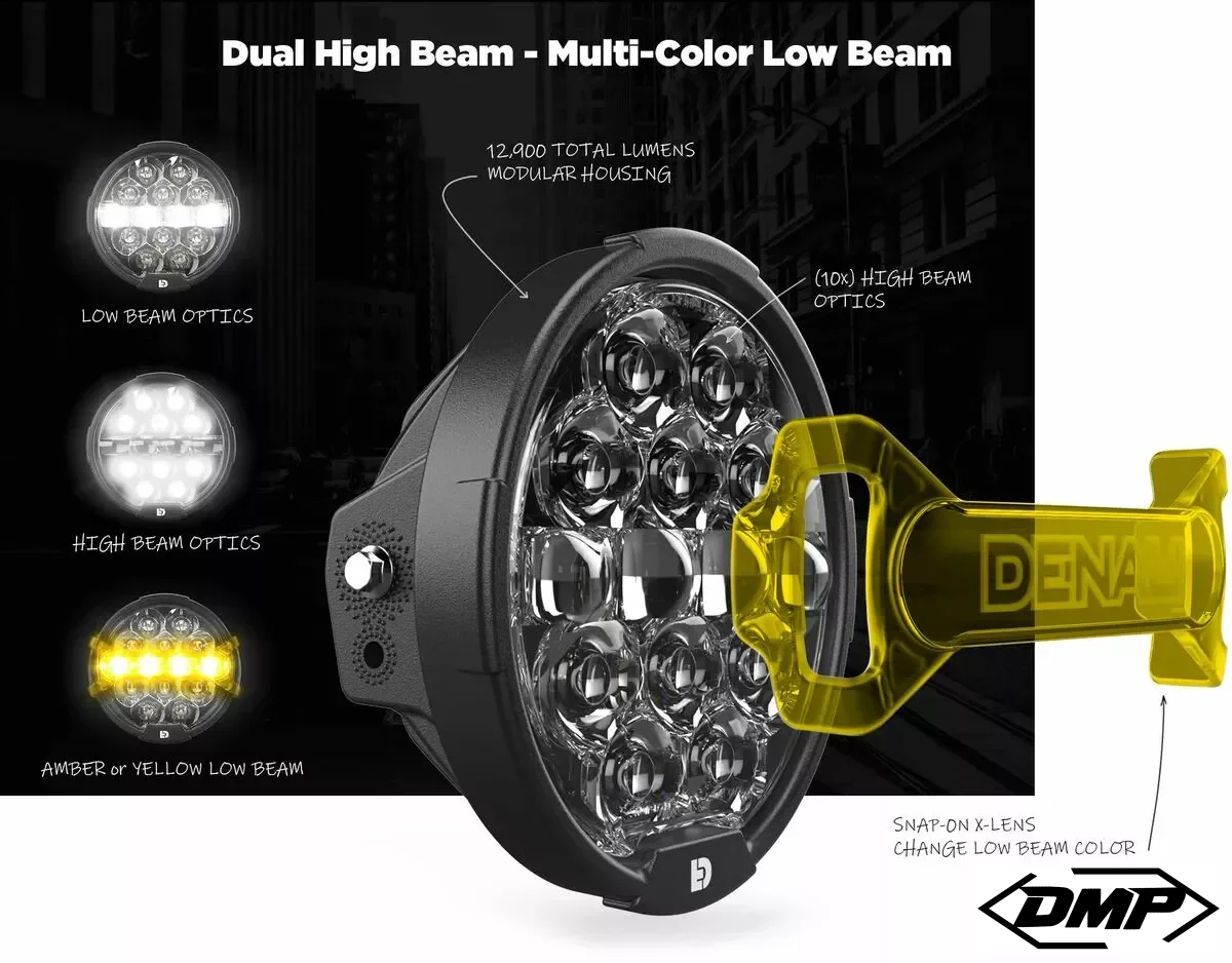 Equipped with Denali’s Modular X-Lens System, this headlight allows you to switch the low beam color to amber or yellow on the fly. This feature is perfect for enhancing visibility in different road and weather conditions.