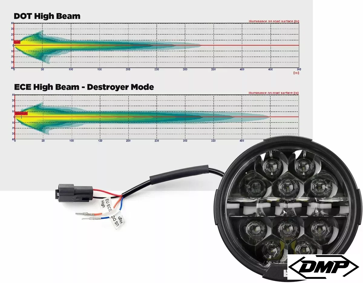 The Denali headlight meets all requirements for ECE certification, making it approved for both high and low beams. This ensures optimal visibility while adhering to strict traffic regulations, providing a safe and reliable lighting solution for riders. It’s tailored for the EU market but equally suitable for global applications.